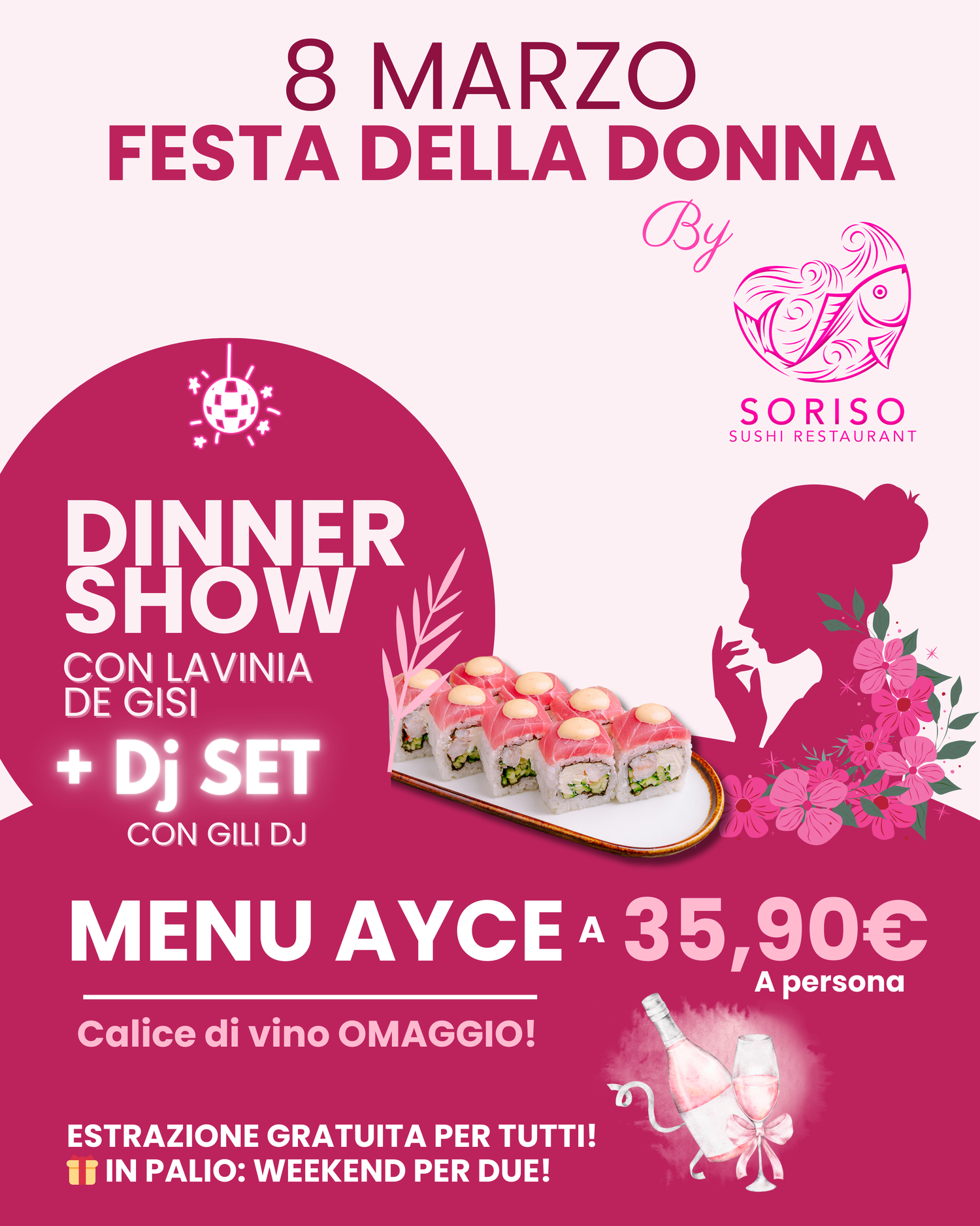FESTEGGIA INSIEME A NOI: MENU' AYCE A 35,90€ + CALICE OMAGGIO! CENA CANTANA E POSSIBILITA' DI VINCERE UN WEEKEND PER DUE!